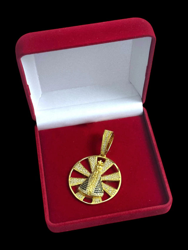 PINGENTE SANTA RAIADA VAZADO CRAVEJADO G BANHADO A OURO 18K